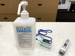- スタッフの朝・昼・晩の検温及びパルスオキシメーターによる血中酸素濃度の測定